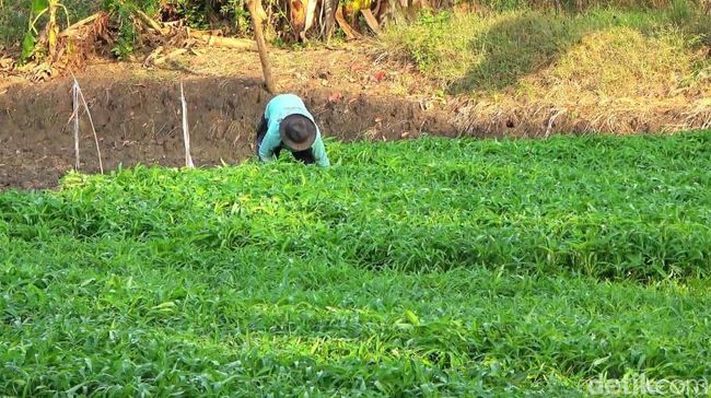 Lamongan - Petani sayuran di Desa Tambakrigadung, Lamongan semringah dengan harga jual sayuran melonjak. Mereka meraup untung dari panen sayuran kangkung yang ditanam.