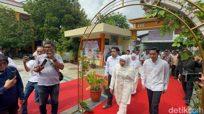 Pantauan detikJatim pukul 08.55 WIB, Khofifah mengenakan gamis berwarna putih. Ia berjalan kaki dari kediamannya yang berjarak 200 meter dari TPS.