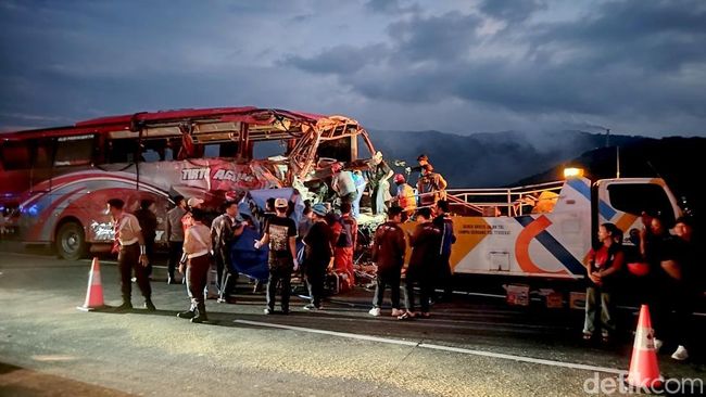 Potret Laka Bus Vs Truk di Tol Pandaan-Malang