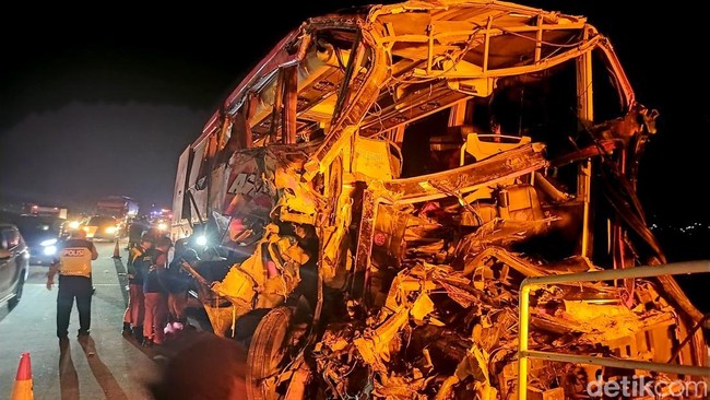 Kondisi Bus Hancur Usai Tabrak Truk di KM 77 Tol Pandaan-Malang