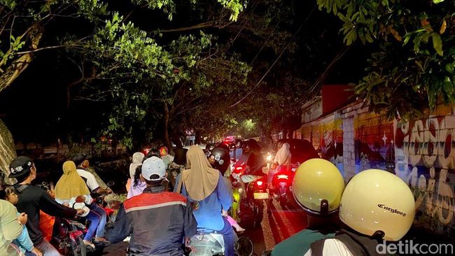 Surabaya - Ribuan warga tumpek blek memadati area Jembatan Suroboyo, Kenjeran menantikan malam pergantian tahun 2025. Mereka menunggu pertunjukan air mancur laser.