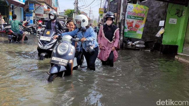 Sidoarjo - Hujan lebat menguyur pada dinihari tadi membuat dua desa di Sidoarjo terendam banjir. Banjir merendam Desa Bungurasih dan Medaeng Kecamatan Waru.