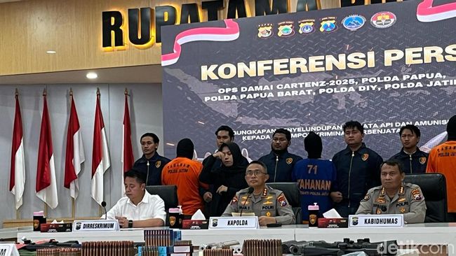 Surabaya - Penyelundupan dan pembuatan senjata api (senpi) rakitan ke KKB di Papua digagalkan. Sebanyak 7 orang ditangkap dar sejumlah daerah.