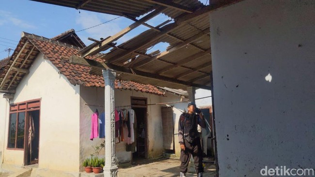 Rentengan petasan balon udara jatuh dan meledak di rumah warga bernama Harmudi, Dusun Bancang, Desa Gandong, Kecamatan Bandun, Kabupaten Tulungagung. Akibatnya, sebuah mobil dan rumah warga rusak. Foto: Adhar Muttaqin/detikJatim