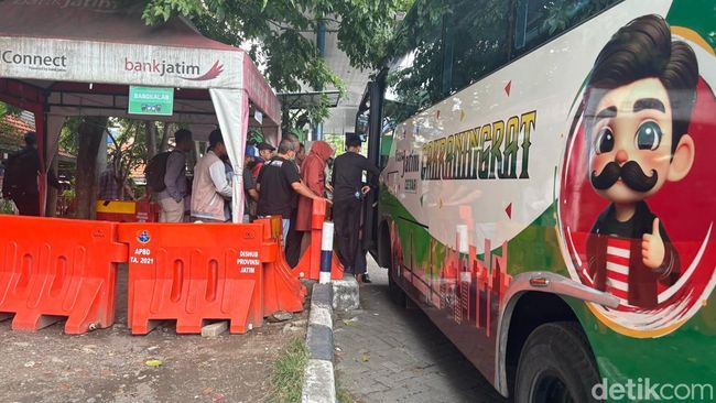 Sidoarjo - Sejumlah penumpang memanfaatkan layanan TransJatim secara gratis atau tanpa biaya hari ini. Layanan tersebut memperingati Hari Angkutan Nasional Tahun 2025.