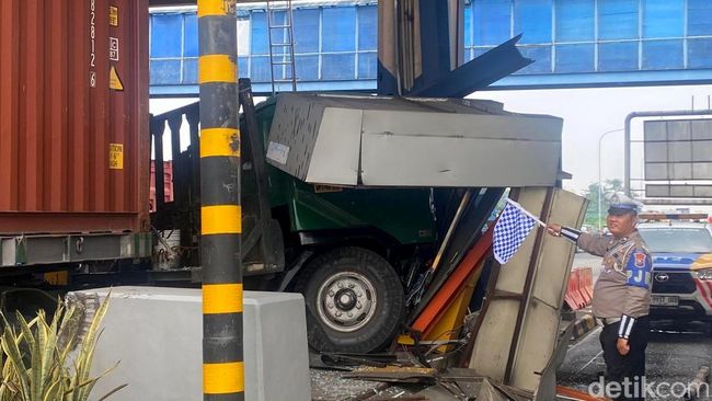 Truk Trailer Ringsek Tabrak Gardu Tol Waru
