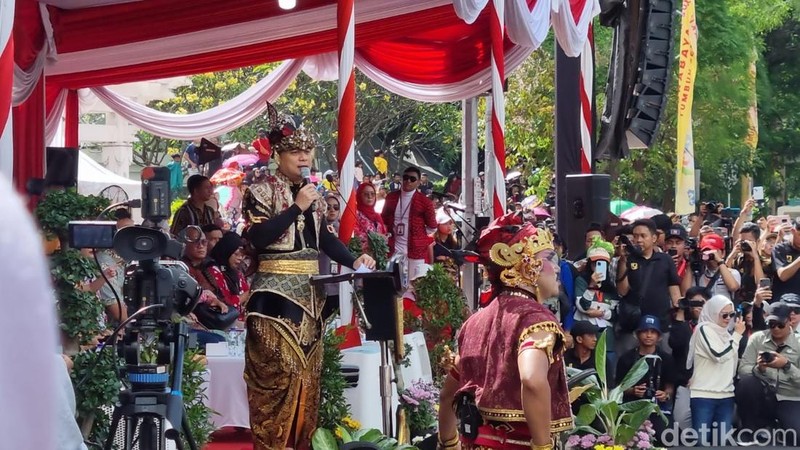 Wali Kota Surabaya Eri Cahyadi membuka Surabaya Vaganza 2025 Parade Bunga dan Budaya di kawasan Tugu Pahlawan Surabaya (Foto: Esti Widiyana/detikJatim)