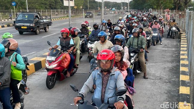 Pantauan detikJatim sejak pukul 16.00 WIB, arus lalu lintas di sekitaran menuju Jembatan Suramadu arah Surabaya-Bangkalan sangat padat. Kepadatan terjadi di jalur roda dua.
