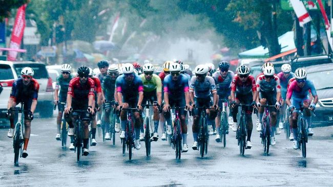 Banyuwangi - Puluhan pebalap sepeda mengikuti perlombaan Tour de Banyuwangi Ijen 2025. Pada etepe ketiga menjadi tantangan tersendiri bagi peserta.