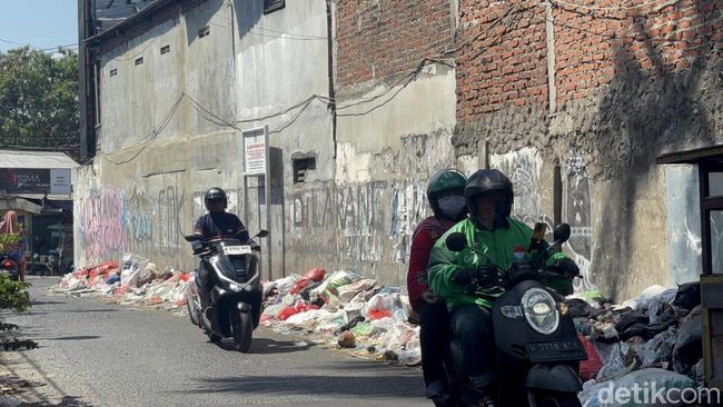 Surabaya - Tumpukan sampah di kawasan Jalan Pakis, Kota Surabaya. Tak hanya mengganggu keindahan dan fungsi jalan, sampah-sampah itu juga menimbulkan bau tak sedap.