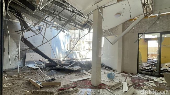 Surabaya - Masjid Al Jabbar satu-satunya bagian yang masih bertahan di Polsek Tegalsari usai terbakar pada Sabtu (30/8). Kendati demikian, kondisinya tentu tak lagi utuh.