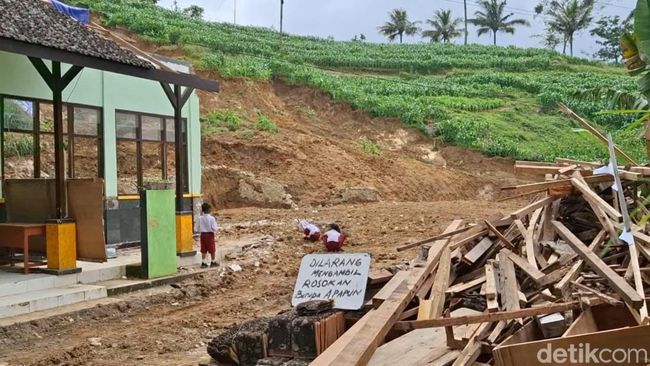 Tulungagung - Sebanyak 19 siswa Kelas 4 SDN 2 Kradinan, Kecamatan Pagerwojo, Tulungagung terpaksa harus belajar di tenda darurat. Ruang kelas hancur diterjang tanah longsor.