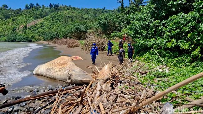 Bangkai Paus Balin Terdampar di Pantai Nglarap Tulungagung