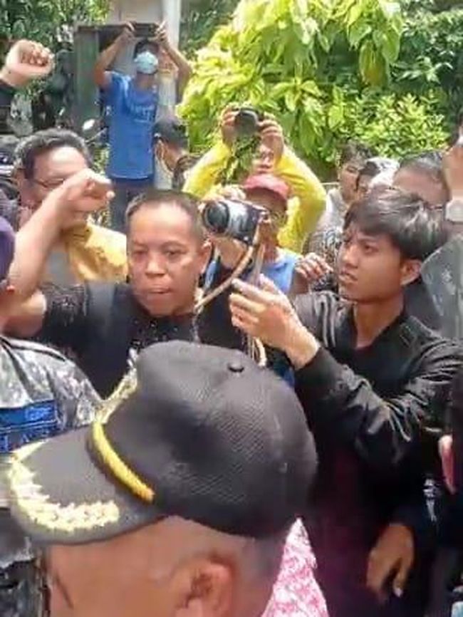 Dalam video berdurasi 1 menit 56 detik juga tampak pria yang mengaku utusan Polda Jatim, yang hendak mengantarkan surat panggilan untuk MSAT. Lalu, puluhan massa yang mengadang melantunkan bacaan 'Ya Jabbar, Ya Qohar'.