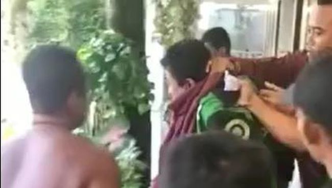 Pria tersebut bersama dua orang yang menggiringnya tampak berjalan cepat. Bahkan setengah berlari. Dalam video singkat berdurasi 11 detik itu juga terdengar suara seseorang berkomentar.