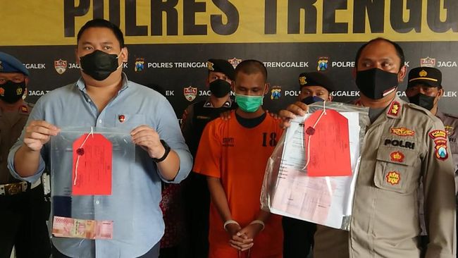 Kapolres Trenggalek AKBP Dwiasi Wiyatputera mengatakan, tersangka yakni Yoppy (22) warga Kecamatan Cangal, Kabupaten Ogan Komering Ilir, Sumatera Selatan. Polisi menyita barang bukti uang sisa hasil kejahatan, bukti transaksi serta alat komunikasi.