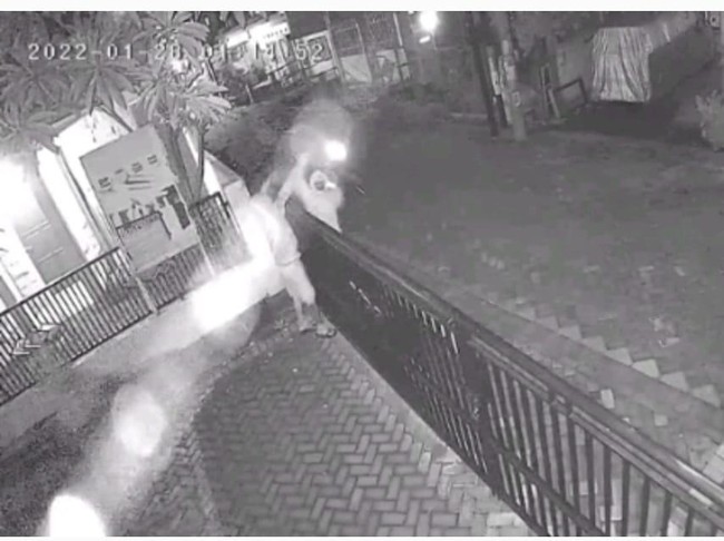 Dari rekaman CCTV terlihat empat kawanan pencuri itu berbagi tugas. Tampak dua pencuri melompat pagar rumah dan dua lainnya berjaga di depan.