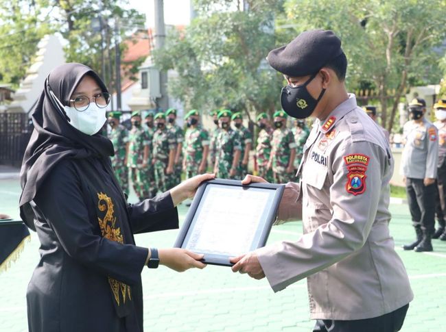 Penghargaan yang diberikan langsung oleh Kapolresta Banyuwangi, Kombes Nasrun Pasaribu dan Bupati Banyuwangi, Ipuk Fiestiandani Azwar Anas dengan didampingi oleh Forkopimda Banyuwangi, di Halaman Mapolresta Banyuwangi, Kamis (24/2/2022).