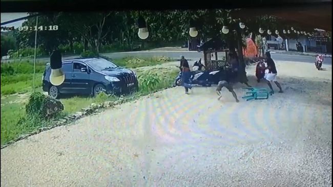 Saat turun dari motor, dua pelaku itu langsung mengacungkan celurit. Korban kaget dan lari ke halaman kafe tersebut.