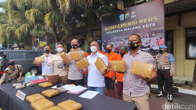 Polisi di Kota Malang membongkar peredaran ganja dalam jumlah besar. Total ada 14, 5 kg ganja diamankan, 5 tersangka turut ditangkap.