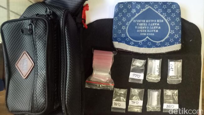Saat tas warna hitam itu dibuka oleh petugas, terdapat satu buah dompet yang di dalamnya berisi 7 poket sabu dengan berat 3,27 gram.