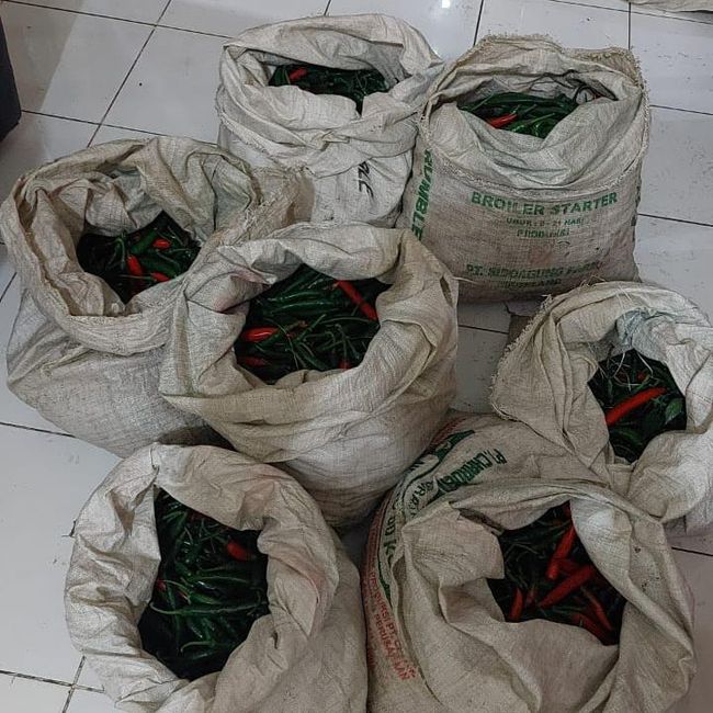 Yussi menjelaskan dari tangan pelaku diamankan tujuh karung berisi cabai besar. Dengan berat total kurang lebih 80 kilogram.