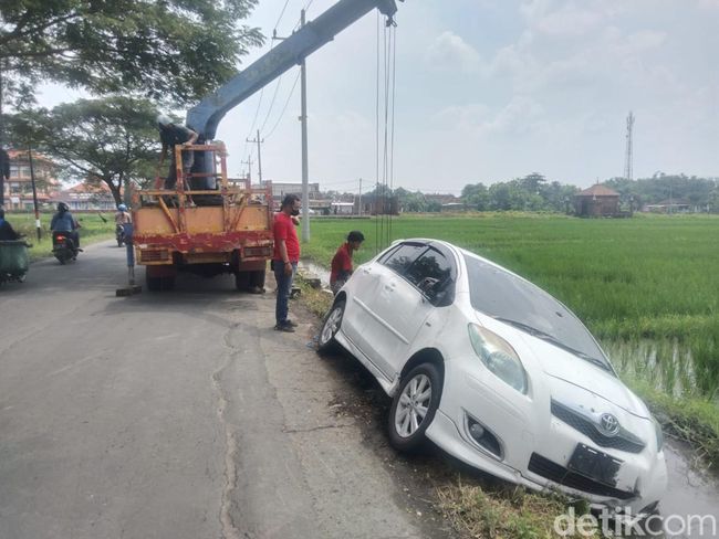"Saya pepetkan mobil saya ke kiri, tapi kebablasan sehingga nyemplung ke parit sama anak-anak itu sekalian," terang Umam.