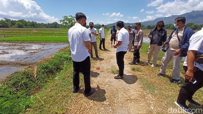 Polisi melakukan olah TKP ledakan mercon yang menyebabkan korban IK (20) kehilangan jari-jari tangan kanan. Kasat Reskrim Polres Ponorogo AKP Jeifson Sitorus bersama tim meninjau lokasi di areal persawahan, Dusun Suki, Desa Sambilawang, Bungkal.