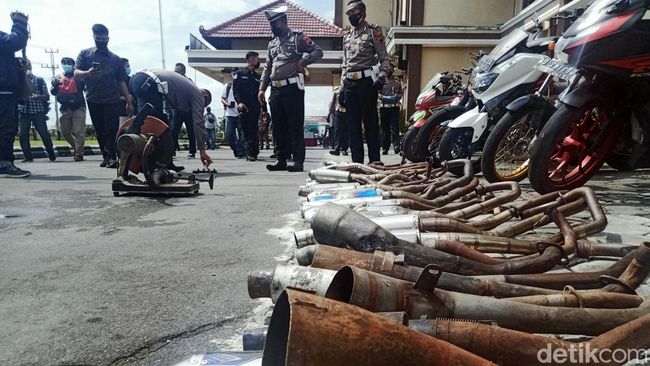 Polisi masih menemukan banyaknya kendaraan yang menggunakan knalpot brong di Surabaya. Korps Bhayangkara pun tak segan mengambil tindakan tegas.