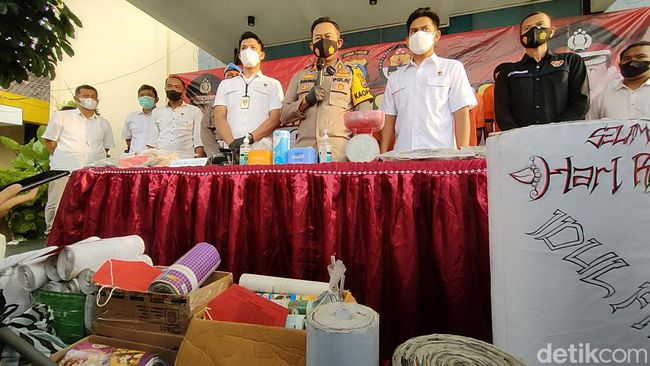 Polisi yang menggeledah rumah tersangka menemukan bahan dan sejumlah petasan siap ledak dengan ukuran yang beragam. Mulai dari ukuran kecil , hingga hampir satu meter.