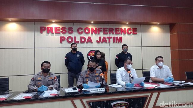 "Dia Selebgram Surabaya," ujar salah satu korban arisan online bernama Sinta di sela-sela konferensi pers pengungkapan kasus di Mapolda Jatim, Selasa (31/5/2022).