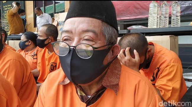 Suyoto tampak diam membisu diantara 34 tersangka kasus operasi pekat yang dirilis Polresta Blitar. Kakek 80 tahun itu baru menyadari dirinya telah melawan hukum akibat menyewakan dapurnya. Kok bisa ?