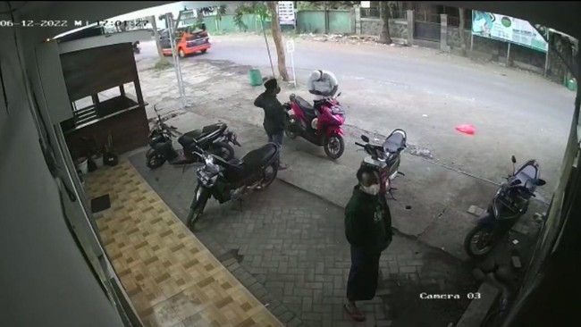 Aksi pencurian motor itu bahkan sempat terekam kamera CCTV. Dalam video berdurasi 2 menit 50 detik itu, tampak tiga orang pelaku yang mengendarai sebuah motor turun di depan di depan kantor Bank Syariah Indonesia.