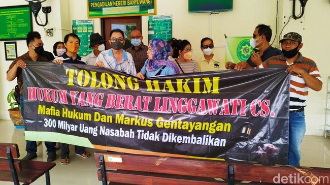 Kekecewaan tersebut, diluapkan para korban dengan kembali membeber banner yang bertuliskan 'Tolong Hakim Hukum Berat Linggawati CS. Mafia hukum dan markus gentayangan, 300 miliar uang nasabah tidak kembali'.