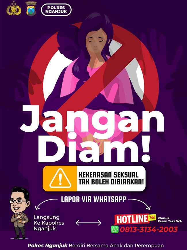 "Kekerasan seksual adalah bentuk kejahatan yang mengerikan dan tidak boleh ditoleransi. Kami mengajak seluruh masyarakat Nganjuk untuk bersatu dalam gerakan yang sama melawan kekerasan seksual terhadap perempuan dan anak. Kita buatkan Satgas perlindungan perempuan dan anak," kata Kapolres Nganjuk AKBP Boy Jeckson, saat launching Satgas Perlindungan Perempuan dan Anak, Jumat (22/7/2022).