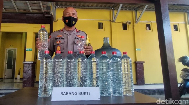 "Iya dari kumpulan -kumpulan (botol miras) itu, botol-botol 1,5 liter itu dikumpulkan jadi satu di botol besar," ungkap Bambang.