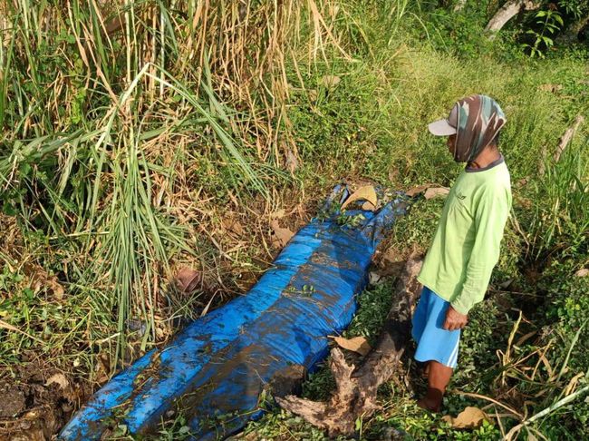 Sholeh lantas menelusuri penyebab tersumbatnya selang air. Ia menemukan selang berdiameter sekitar 100 cm itu menggelembung di satu titik. Setelah ia robek menggunakan sabit, ternyata terdapat mayat pria di dalam selang air.