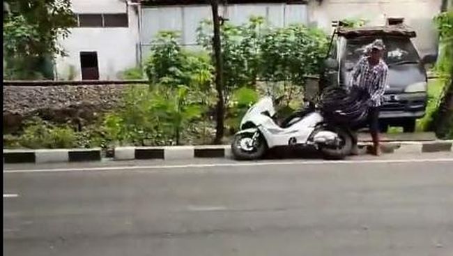 Pemotor Honda PCX berstiker real madrid diduga mencuri kabel milik PT KA Daop 8 di Jalan Ahmad Yani Frontage Road Timur, Surabaya. Aksi pemotor itu viral di aplikasi percakapan dan medsos.