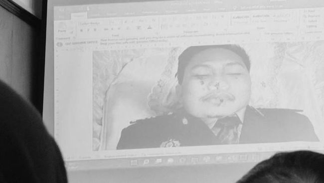 Potret wajah Brigadir N Yosua Hutabarat ditampilkan dalam sidang untuk pertama kalinya. Dalam potret tersebut tampak ada sejumlah luka di wajahnya.