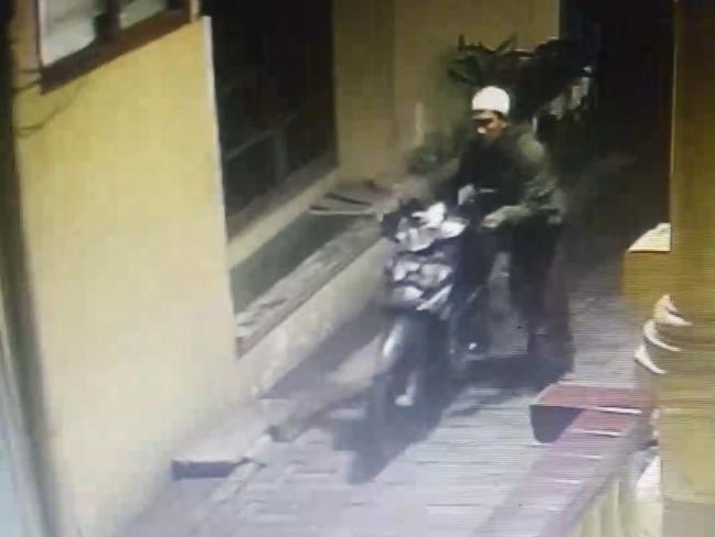 Pelaku santai menuntun motor korban hingga keluar gang. Baca di halaman selanjutnya.