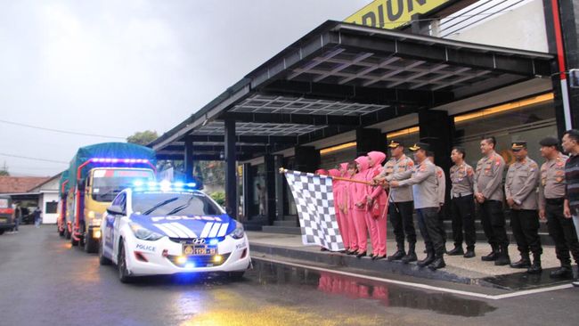 Semua logistik bantuan dari empat Polres, kata Anton, diangkut dengan 7 truk berangkat sore ini. Bantuan logistik yang diberangkatkan, lanjut Anton, di antaranya beras sebanyak 3,3 ton dan mi instan 125 karton.