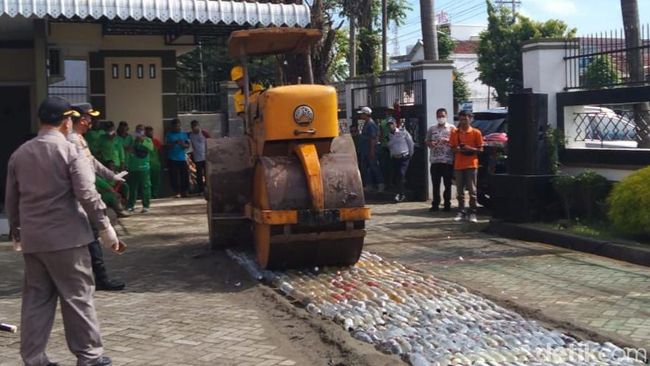 Barang bukti minuman keras dimusnahkan dengan cara digilas menggunakan alat berat. Sedangkan sabu dan pil dobel L atau pil koplo dimusnahkan dengan cara diblender dan dilarutkan dengan air.