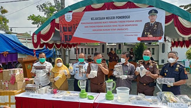 "Kegiatan pemusnahan barang bukti ini merupakan kewajiban dari kejaksaan. Ini sebagai bentuk pelaksanaan eksekusi terhadap putusan pengadilan yang telah berkekuatan hukum tetap," kata Kajari Ponorogo, Rindang Onasis, Selasa (13/12/2022).