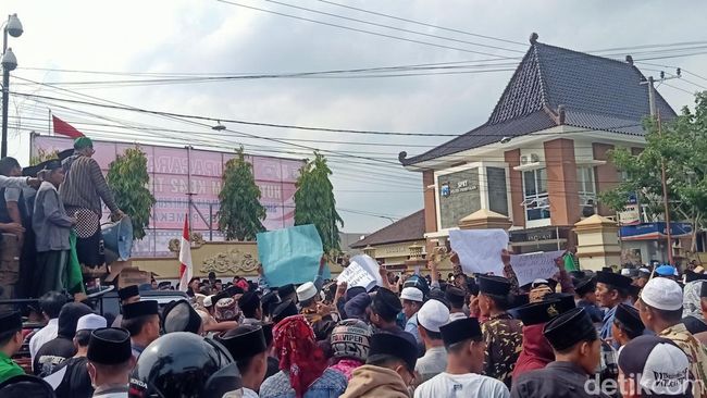 Ratusan anggota Ansor Pamekasan dan warga Desa Nyalabu Laok ngeluruk Polres Pamekasan. Sambil membawa poster massa berorasi meminta Kapolres keluar untuk menemui pengunjuk rasa.