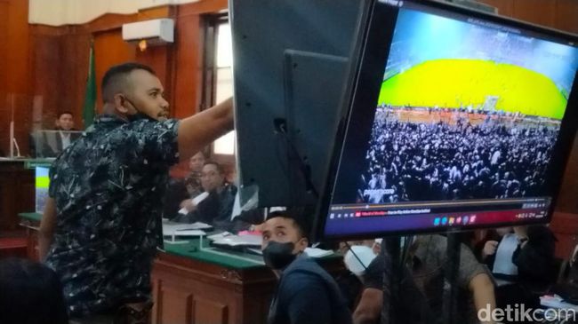 "Yang saya lihat pemain Arema berkumpul di tengah, kemudian turun beberapa suporter. Lalu ada provokasi dari tribun, kemudian pemain Arema masuk dan suporter mulai mengejar dan berdatangan ke arah kami," tutur Willy saat menjawab pertanyaan jaksa, Sabtu (21/1).