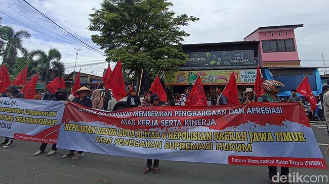 Massa yang mengatasnamakan Forum Masyarakat Blitar Raya (FMBR) mendatangi Mapolres Blitar Kota. Mereka mengapresiasi karena telah mengungkap kasus perampokan rumah dinas (rumdin) Wali Kota Santoso.