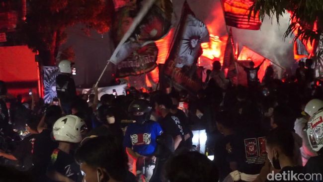 Unjuk rasa ribuan massa PSHT di depan Mapolres Mojokerto Kota berakhir pada Kamis (9/3/2023) sekitar pukul 22.00 WIB. Sebagian massa kembali ke tempat asal dengan berkonvoi melalui Jalan Brawijaya.