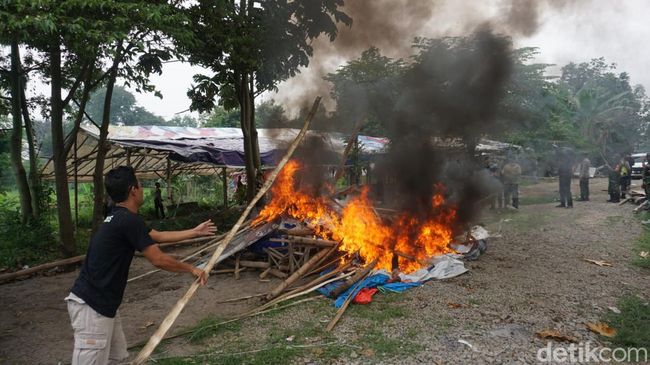 Pembongkaran arena judi di Dusun Tengger ini berlangsung lama. Sebab petugas melakukannya secara manual. Hingga sekitar pukul 15.30 WIB, mereka baru berhasil membakar sebagian fasilitas dan material gubuk arena judi.