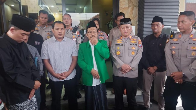 Ketua PN Kabupaten Mojokerto Budi Mulyo dan Ketua PN Kota Mojokerto Arif Wahyudi datang ke Polres Mojokerto Kota pada Selasa (24/3) sore. Keduanya datang bersama Tim LBH Ansor Mojokerto Raya serta sejumlah anggota Pagar Nusa.