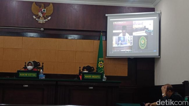 Sidang pembacaan vonis untuk Mardiono digelar di Ruangan Cakra, PN Mojokerto pada Kamis (16/3/2023). Sidang dipimpin Ketua Majelis Hakim Husnul Khotimah, serta hakim anggota Jenny Tulak dan Nurlely. Terdakwa Mardiono mengikuti sidang secara daring dari Lapas Mojokerto tempatnya selama ini ditahan.
